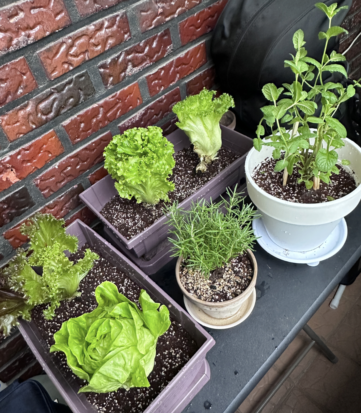 뿌리상추는 처음엔 잎이 살짝 힘없이 늘어졌지만, 4일 정도 지나면서 수분을 다시 끌어올리고, 잎 가장자리가 살짝 말리며 건강한 모양을 되찾았어요. 특히 로메인 계열은 흙이 더 잘 맞는 듯, 잎이 길게 뻗어 자랐습니다.